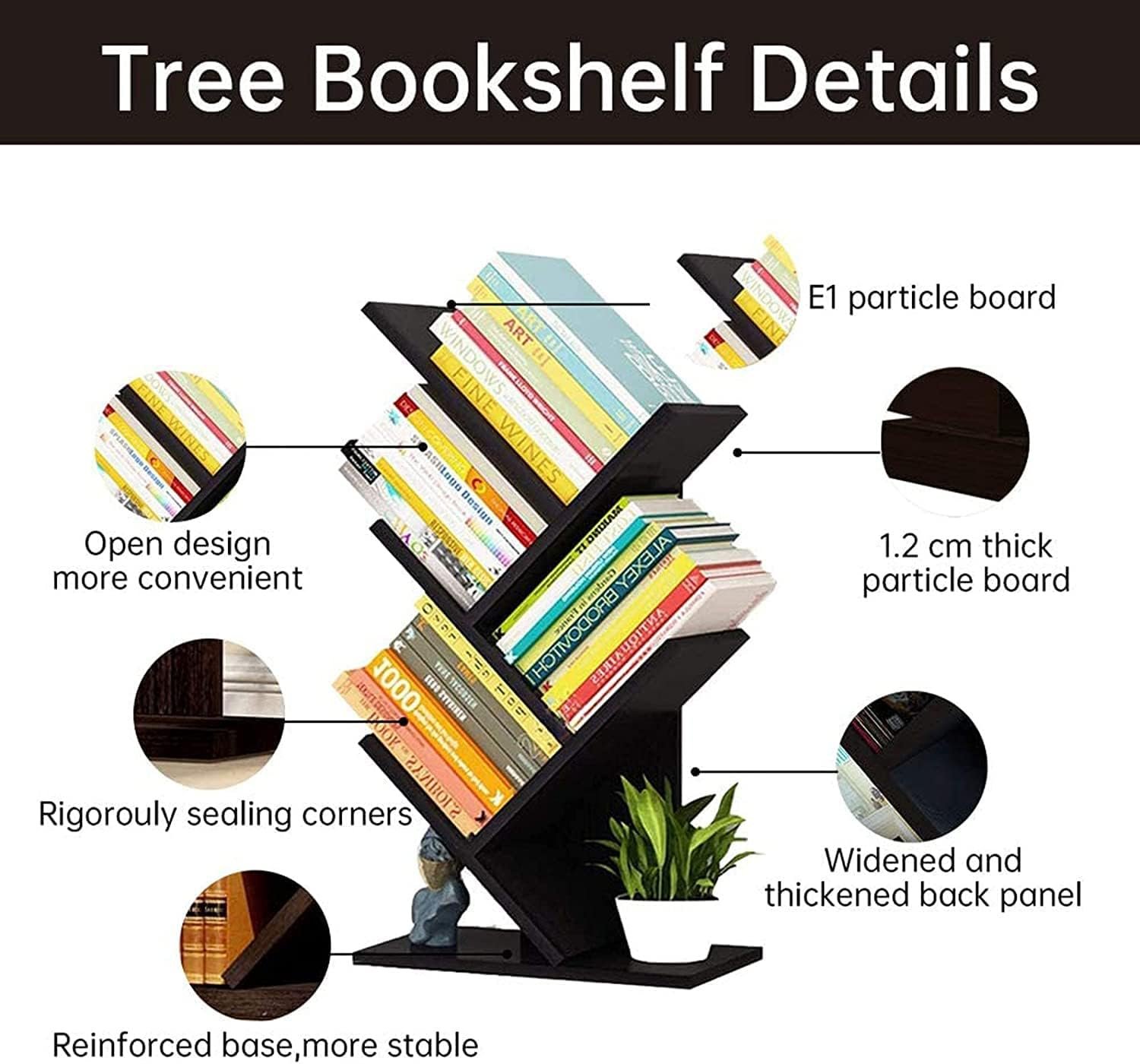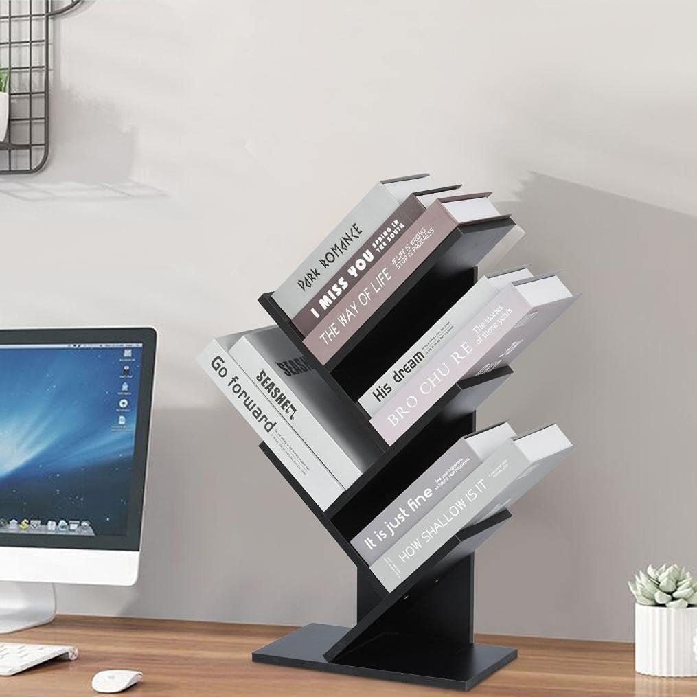 - This bookshelf is light and stable, and can be moved to any place easily and lightly. The tree-shaped bookshelf is used to store office supplies, documents, books, and organize office supplies. Its compact size makes it an ideal choice for any desk, table or countertop.