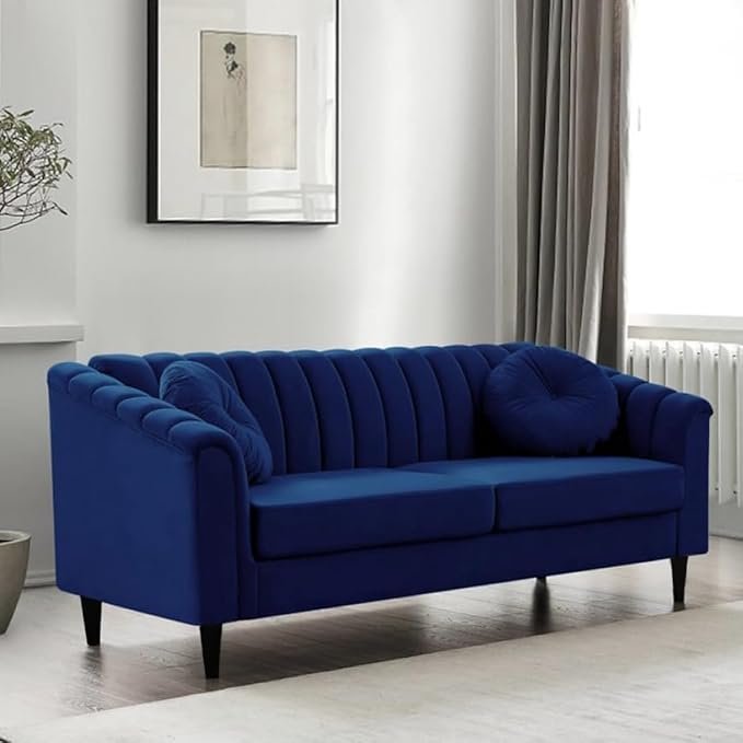 Design & Material: The Dorano Sofa Set features a sturdy Solid Wood frame that ensures durability and longevity. The seat cushions are made from high-quality foam, providing plush comfort and support. The upholstery is crafted from soft yet durable fabric, offering a luxurious feel while being easy to maintain. The rich blue color adds a pop of vibrancy to your living area, complementing a variety of decor styles.