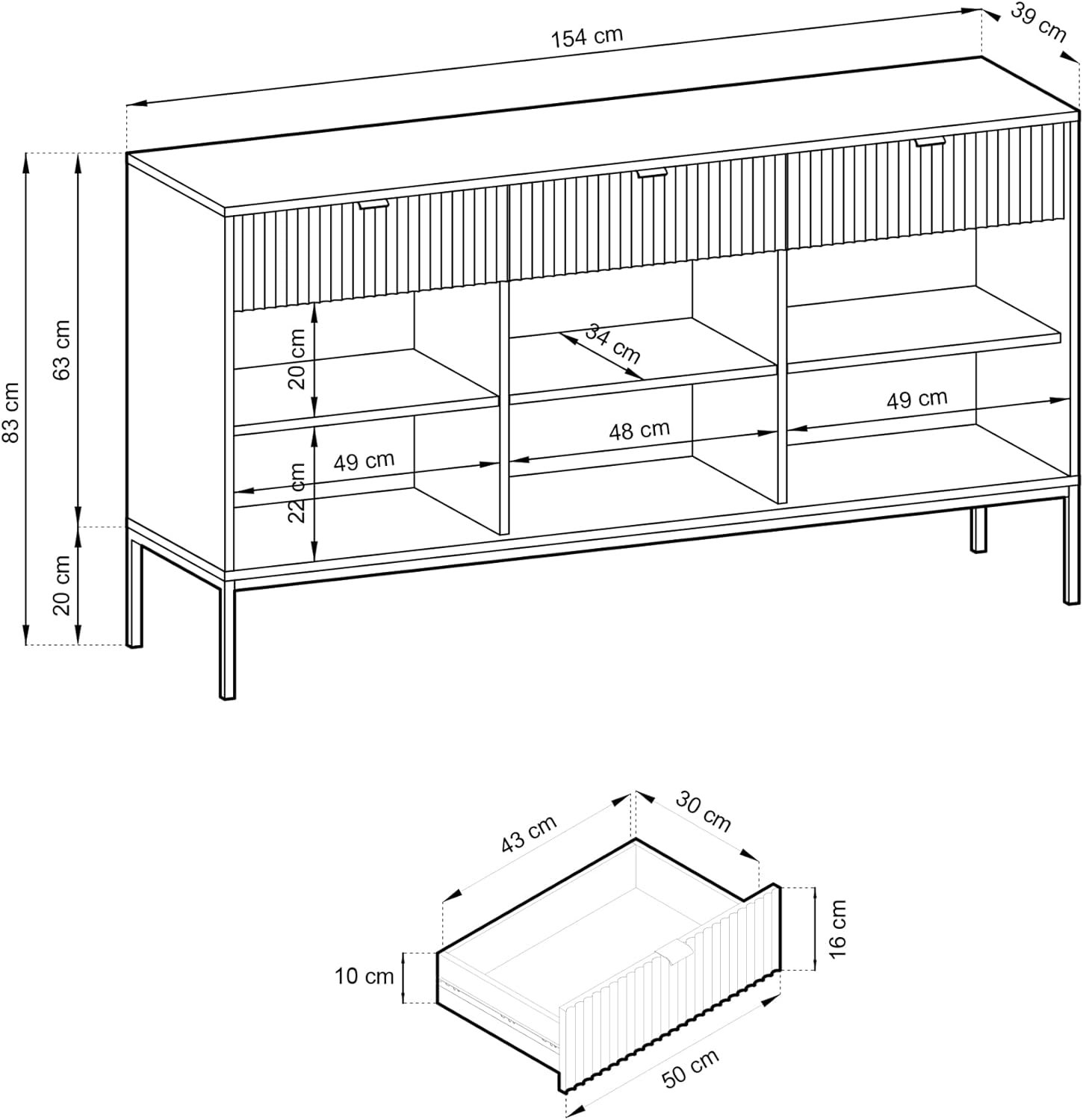 Three-Door Chest of Drawers 154 cm x 83 cm x 39 cm